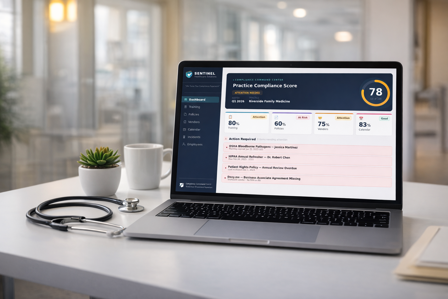 Sentinel builds and maintains your non-clinical compliance files, policies, and training records — then keeps them clean and findable when regulators, payers, or advisors ask.
